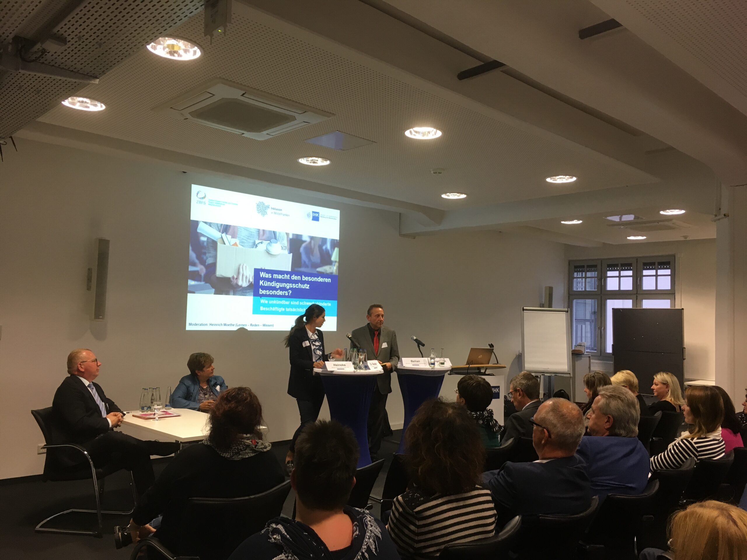 Auch die Juristin Dr. Katharina Reidel wies darauf hin, dass der Dialog mit dem Integrationsfachdienst die Chance bietet, konstruktive Lösungen zu finden. Den Mythos der Unkündbarkeit widerlegte die Fachanwältin für Arbeitsrecht. Schwerbehindertenschutz bedeute nämlich nicht, dass grundsätzlich keine Kündigung möglich sei.