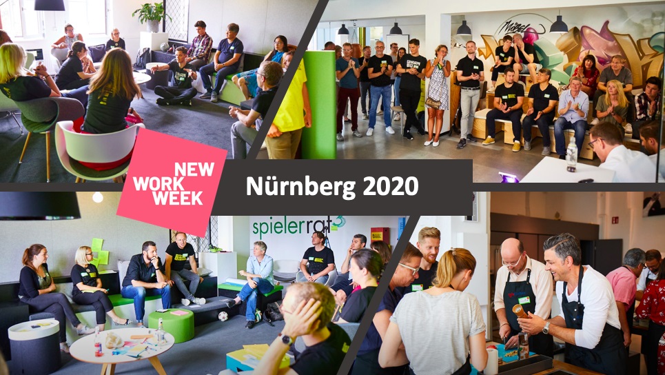 NEW WORK WEEK Beispiele aus der Praxis für die Praxis. Neue Führungsrollen, die persönliche Selbstentwicklung und zukünftige Organisationsformen sollen uns die Zusammenarbeit noch besser zum Gelingen bringen, als bisher. Wir bereiten Change und Transformation zum Ereignis und nehmen auch diejenigen mit, die sich jetzt erst mit NEW WORK beschäftigen. Mit unterschiedlichen Schwerpunkten an unterschiedlichen Standorten werden allein in Nürnberg über 15 Events vom 21.-25. September stattfinden. Alle Events und weitere Infos findet Ihr unter new-work-week.com