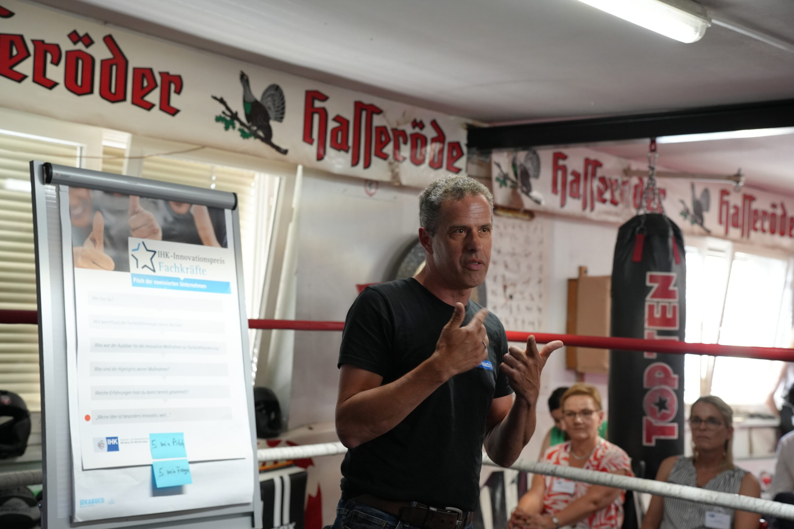 Am 26.06.2024 fanden im Rahmen der Ausschusssitzung Fachkräftesicherung in der besonderen Location ‚Gym und Boxclub Peter Althof‘ die Pitchvorstellungen der nominierten Unternehmen statt