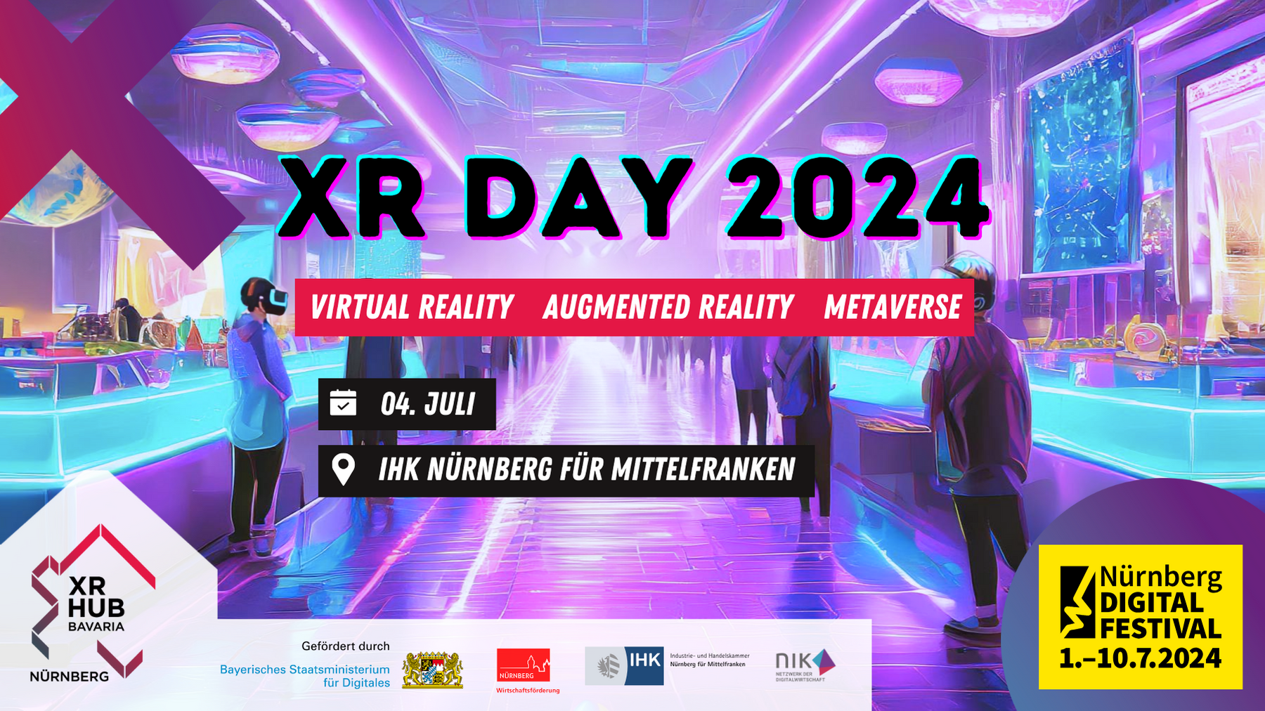 Kostenlose Anmeldung unter https://www.xrhub-nue.de/veranstaltungen/xr-day-2024-nuernberg-digital-festival/
